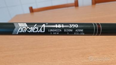 Lunghezza 390 cm telescopica, 5 sezioni, 6 anelli, Ingombro 90 cm