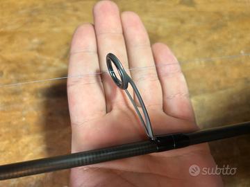 G loomis glx 822 dsr in ottime condizioni, gestisce dalle gomme spiombate e artificiali da 4-5g, e 5-7cm passando da testine fino ai 14g e per andare a topwater e palettati da 10-12cm. Ti puoi spingere fino a 25g come per esempio i silent assassin 129-140mm massimo.