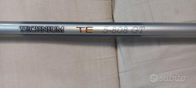Technium di Shimano è una canna in carbonio di alta qualità, utilizzate per diverse tecniche di pesca. Nello specifico, la sigla TE indica generalmente un modello telescopico, mentre GT si riferisce solitamente a canne bolognesi montate con anelli e porta mulinello. I numeri 5-808 indicano solitamente l'azione,possibilità mulinello