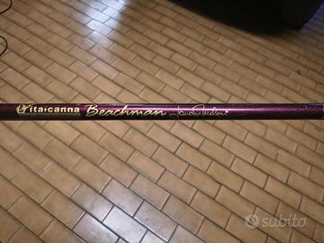 Vendo storica canna ripartita della Italcanna modello Beachman prima serie, canna ideata da Sandro Meloni per il surf casting, lunga 12 piedi e con potenza di lancio 3-6 once, a suo agio con tutti gli stili di lancio specialmente il pendolare e con tutti i mari perché testata anche con prese oceaniche come squali , razze, ombrine boccadoro etc...(inserirò uno stralcio della recensione apparsa sulle riviste dell'epoca).
