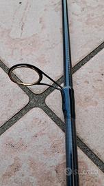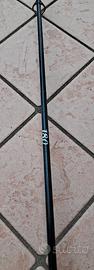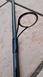 Canna artigianale in fusto unico in carbonio da m.1,80. Azione estremamente rigida e potente per spinning pesante. Finiture estremamente curate, anellata con passanti dorati.