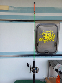 Canna lunga 1, 50 m con porta massima 200 g,mulinello e monofilo del 0,40 usata si è no 2 volte,artificiali nuovi mai usati. Contatti email o whatsapp no perditempo o affaristi solo se veramente interessati non spedisco.