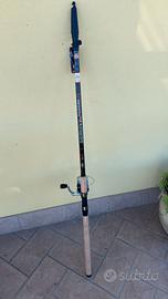 Canna lancer 4.20 m. 100% carbonio potenza lancio fino a 80 grammi compresa di mulinello 6000 a 4 cuscinetti già imbobinato con 200 m di filo.