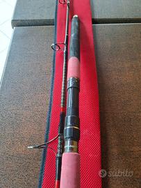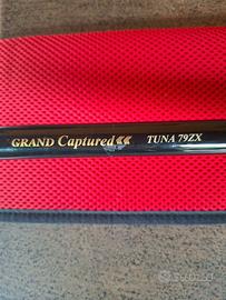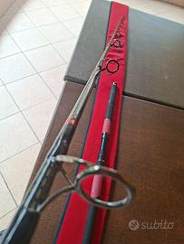 Lunghezza: 7’9” (circa 2,36 m) Sezioni: 1,5 (offset / smontabile) Azione: Medium Fast Casting (lure weight): fino a 160 g Trecciato consigliato: PE 5–8 Max drag: 7–15 kg Target: tonno giganti Blank in Kevlar (aramide) + grafite ad alta densità per massima resistenza e torsione Con Elevata riserva di potenza per combattere pesci anche oltre i 100 kg Azione potente ma progressiva → buona gestione della ferrata e del combattimento Progettata per lanci lunghi e precisi senza affaticare troppo perfetta per: stickbait e popper medio-grandi È una canna molto potente ma non “palo” pensata per tuna spinning serio (PE 5–8) ottimo compromesso tra controllo, lancio e forza in combattimento.