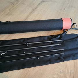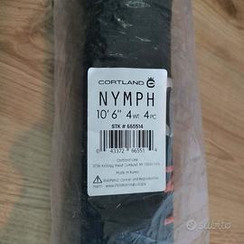 Canna pesca a mosca Cortland Nymph 10' 6" 4 WT mai usata, completa della sua custodia rigida originale, sacca interna e pellicola esterna. Assolutamente nuova e perfetta.
