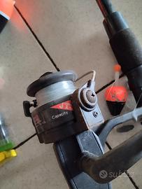 canna da pesca con mulinello e accessori