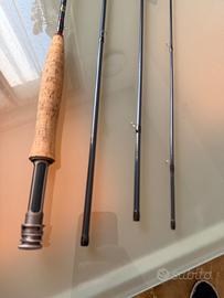 Soldarini Hydropsyche Élite 9’3 coda 3/4 , grezzo montato in full recoil , sughero portoghese, porta mulinello carbonio , apicale costituito da anello innestato , piedini anelli rifiniti ultra leggeri , montata da professionista , peso canna montata 80gr, X ricerca Soldarini , Hardy , sage , Redington jmc greys , Loomis e Franklin ,