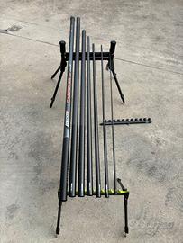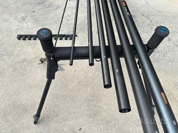 Canna da 11 m in 7 elementi per la pesca della carpa al colpo. Assieme alla canna sono compresi, tubo di protezione, Rullo pesca al colpo roubasienne PF - PR 500, Supporto kit o canne PF - KS 100 e il supporto kit verde in foto. Tutto il materiale è nuovo, mai usato. Consegna a mano.