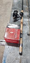 vendo combo shimano speedmaster 270h lg 270 gr 20-50 nuova mai usata con ancora i cartellini originali più mulinello shimano sustain 5000 fg con qualche segno di usura ma gira come un orologio il tutto a 230 preferisco vendere tutto in blocco ma posso anche separare x info tel al 3386430126 no offerte assurde verrete bloccati non trattabile visto il prezzo