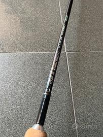 In Carbon HM Mitsubishi, con impugnatura doppia in sughero e portamulinello in alluminio. Canna versatile, ideale per spinning medio.