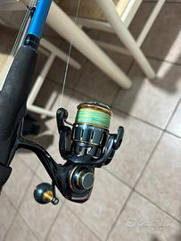 Combo da spinning 2.70 metri 10-35 gr Canna perfetta con anelli fuji fazlite doppio ponte ! Mulinello perfettamente funzionante usato 1 volta con 300 metri di trecciato 9 capi 0.14 mm Ottimo per serra , spigole , ecc ecc … Il tutto tenuto perfettamente ! No perditempo !