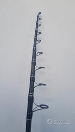 Occasione piu unica che rara di portarsi a casa una Todeschini 4.40 la 175 limitata a 20 pezzi. La canna è stata usata pochissimo acquistata da me e tenuta da collezione ( cima nuova ). Rapidissima in ferrata e piega a dir poco spettacolare, ha una lunghezza di 4 metri e 40 permettendo di pescare a lunga distanza, potente ma non da distruggervi la schiena dopo pochi pesci