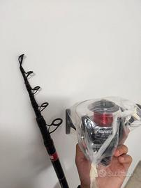 Canna da pesca da mare, lunghezza 4 metri, 130 grammi, mulinello Fishen 65 sele. Inclusi nel prezzo: cappuccio salva anelli, telo copricanna. Ottime condizioni in vendita per inutilizzo, no perditempo. Prezzo trattabile.
