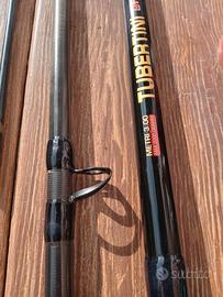 Canna da barca Tubertini in tre sezioni Potentissima con la vetta rossa per pesca traina o bolentino di profondita vetta gialla bolentino medio o alto fondale misura mt. 3 gr.2000 ottimo stato poco usata