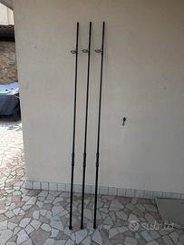 valuto vendita per cambio canne canne usate in svariate sessioni ma tenute bene. lunghezza: 12 piedi potenza: 3,5 lb canne che offrono potenza, controllo del pesce e comodita nell’uso. esteticamente presentano un fusto interamente nero opaco con legature degli anelli in nero lucido. decorazioni sopra il porta mulinello in carbonio con legatura in blu acceso. manico in guaina giapponese e porta mulinello regolabile per qulsiasi misura. anellatura che permette una buonissima fuoriuscita di filo anche di dimensioni generose che permette di raggiungere distanze medio/lunghe. vendo set intero non spedisco