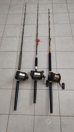 2 Canne Tiagra Trolling da 210 30 AX carrucolata e Tiagra da 200 Beast Master 2030. 1 Canna da 190 carrucolata Shimano