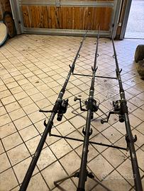 Vendo canne da pesca alla carpa siluro e storioni della CARP BEATER 3,6 mt e 3 lbs complete di mulinelli con bait runner, trepiede e segnalatoei acustici condizzioni impeccabili!
