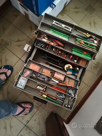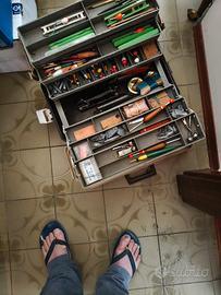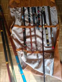 canne da pesca 12 +cassetta da pesca con piombi galleggiante tutti italiani e non cinesi ( vintage)