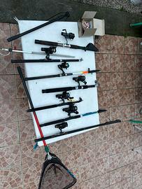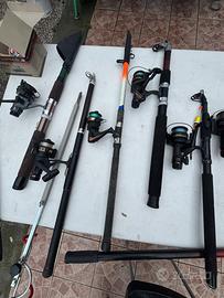 Canne da pesca, vari marche, modelli complete di mulinelli e accessori la vendita può essere completa o separatamente