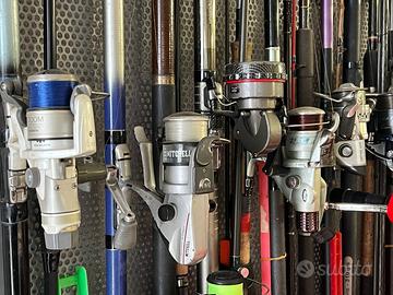 Canne da pesca 14 con mulinello in tutto sono 20 usate in buone condizioni si vendono in blocco viste e piaciute visione e ritiro a domicilio no spedizione