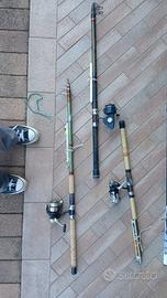 spedizione previo accordi! canne da pesca con mulinello €50 canne da pesca senza mulinello €25 valigetta con tutti gli accessori presenti in foto €90 i prodotti sono stati acquistati e usati solo un paio di volte, non sono nuovi ma sono in buone condizioni Vendita preferibilmente diretta, previa visione dell’oggetto da parte dell’acquirente. In caso di spedizione, sono disponibile a inviare foto più dettagliate degli oggetti; pertanto non si accettano resi.
