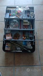 canne da pesca mulinelli e valigetta con accessori