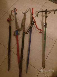 Vendo 4 canne da pesca. 20 euro l una e 5 appoggio per canne 5 uro l uno. Per chi le prende tutto in blocco 90 euro.