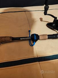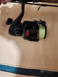 vendo tre canne da pesca, due complete di mulinello, una borsa attrezzi con accessori, un poggia canna, un copricimino.
