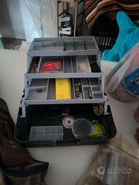 3 canne da pesca lineaeffe con 3 mulinelli cassetta con tutti gli accessori retino e sacca