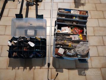 svendo varie canne da pesca: da tonno con mulinelli Pen ,da jig, da surf casting, da traina , numerose canne da barca e cassette con accessori vari. anche separatamente al miglior offerente.