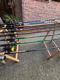Vendo in blocco per inutilizzo le seguenti canne da pesca in mare complete di mulinelli: 1. CANNA NUOVA MAI USATA COLMIC ADRIATICA MT 3,30 (3 pz + cimino), con mulinello RYOBI OASIS 6000, più 5 cimini; 2. MITCHELL SUPREMA MT 3,40 USATA (3 pz + cimino), con mulinello SHIMANO EXAGE 6000 FC, più 4 cimini; 3. CANNA TELESCOPICA ALBACORE MT 4,00 USATA (più 1 cimino dí ricambio), con mulinello SHIMANO EXAGE 6000 FC; 4. CANNA TELESCOPICA VINCENT TOREADOR MT 2,70 USATA, con mulinello SHIMANO SEDONA FJ 4000; 5. CANNA TELESCOPICA VINCENT TOREADOR MT 2,70 USATA, con mulinello MITCHELL AVOCET 2 C6000R; 6. CANNA TELESCOPICA VINCENT BOLO MEDIUM SUPER STAR USATA MT 3,00, con mulinello MITCHELL AVOCET 2 C6000R; 7. CANNA TELESCOPICA VINCENT SPECIALSER MT 2,40 USATA, con mulinello PENN PURSUIT III 4000; 8. CANNA TELESCOPICA BLADE RUNNER MT 2,40 USATA, con mulinello MITCHELL AVOCET 2 C6000R.