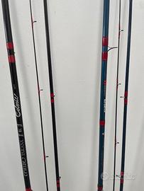 Come da titolo vendo canne da pesca Tutte sono in ottime condizioni Dettagli da sinistra verso destra: 1) Ignesti Ulisse Inglese telescopica 4 metri euro 45 2) Shimano x-line 390 euro 80 3) Colmic Cruse Parana' 390 euro 65 4) Sunderidge micro match 390 Milo euro 75 5)Daiwa Francesco Casini waggler 390 euro 60 6) Pro Prestige 420 Tubertini euro 80 7) Colmic Cruise Testa Rossa 390 euro 90 8) Bolognese artico Jet 5 metri euro 50 9) Colmic Alexia Bolognese 6 metri euro 45
