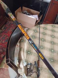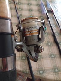 canne da pesca usate con 3 mulinelli più varie attrezzature