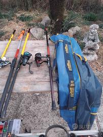 Vendo canne da pesca più valigetta accessoriata e poggia canne