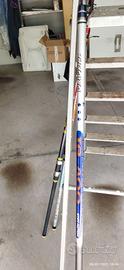 Vendo canne da pesca, due nuove e una usata da surf casting come da foto, una bolognese TrianaTB 800 nuova con passanti lunghi da 7 metri in carbonio M500 e una fissa da 7 metri, una fissa grezza da 8 metri con un ricambio sopramanico, tutto in carbonio.