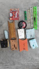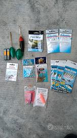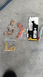 1) Canna da pesca Cendret, lunghezza massima 315 cm e minima 90 cm mulinello Samurai-3i 1500 2) Canna da pesca Cendret, lunghezza massima 405 cm e minima 100 mulinello Mitchell 3) Sacca porta canne lunghezza 105 cm 4) Scatola verde con inclusi: Ami di diverse misure (ancora confezionati) 4 bobine di lenze Cucchiaini rotanti di diverse misure e colori Esche finte di diverse misure Terminali già preparati Diversi piompi Terminali elastici e di ferro Galleggianti Prezzo trattabile
