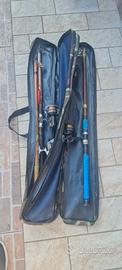 3 Canne complete di mulinello filo ecc pronte all uso . INCLUSO pratica custodia porta canne