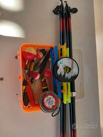 4 canne. una da punta first fish caperlan da mt4.una da punta persicus da mt 4.40.e 2 canne per pesca sia al laghetto che al mare.lunghe mt 3.piu contenitore comprendente galleggianti filo piombini e lenze.tutto a 30 euro.mi trovo zona pisana malagrotta.