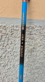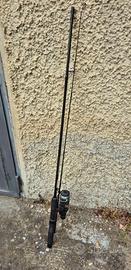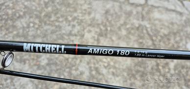 Due canne da pesca di qualche anno fa ma usate pochissimo. La prima canna da spinning Mitchell Amigo 180 (1,80 mt) smontabile in due pezzi con mulinello Ryobi RX20G. La seconda canna per pesca all'inglese Trabucco trent 440 (4,40 mt) telescopica con mulinello. In aggiunta anche un reggicanna usato solo un paio di volte, Su richiesta posso inviare più foto. Solo ritiro a mano.