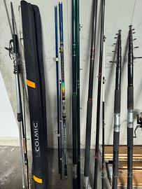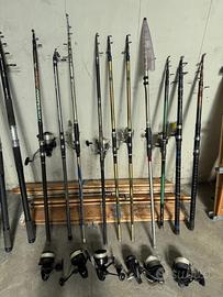 Vendo in blocco canne da pesca miste, Italcan da vivo, canne da Beach ledgering colmic e metchell più mulinelli metchell 498. Prezzo da concordare