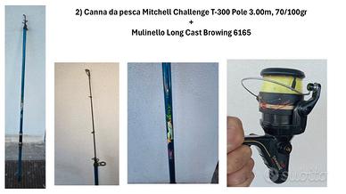 2) Canna da pesca Mitchell Challenge T-300 Pole 3.00m, 70/100gr + Mulinello Long Cast Browing 6165