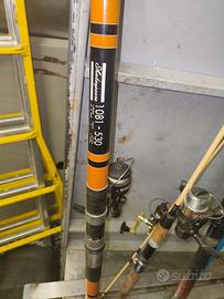 come da foto cinque canne da pesca.. non fate domande perché ferme da un paio d'anni viste e piaciute complete di mulinelli