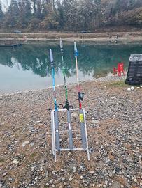 Tutte le canne sono provvisti di mulinelli professionali e tenuti davvero maniacalmente pari al nuovo. Per chi fosse interessato sono in possesso pure di una canna teleregolabile camor da 9 metri.
