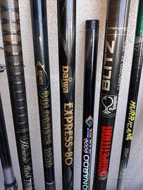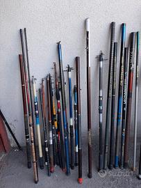 vendo canne da pesca usate ,sia da mare che da lago . shimano, daiwa e altre ancora. nelle foto ho messo metà delle canne a disposizione. prezzo da concordare