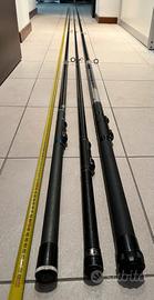 Collezione tre canne da pesca vintage di diverse marche e modelli, ciascuna con le proprie specifiche: