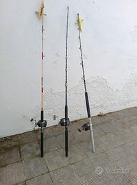 vendesi 3 canne da traina per tonni con 2 mulinelli Shimano e uno Okuma