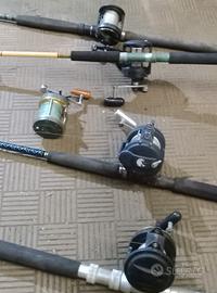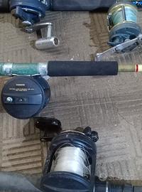 vendesi 4 canne e 5 mulinelli da traina pesante tutto funzionante e usato pochissimo tre mulinelli Shimano 1 Okuma