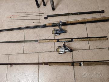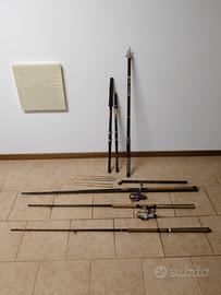 vendo canne da pesca varie, mulinelli vari, più accessori da pesca e cassettina porta oggetti circa 10/15€ al pezzo. vendo sia tutto in blocco o anche separatamente.