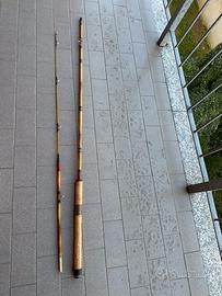 Canne di banbu vintag 1 con scatola di legno e 2 cime da spining e da mosca e le altre come vedi le foto a partire da 30€