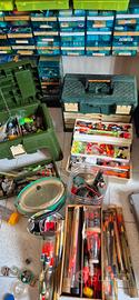 Vendo in blocco 60 canne mare e fiume tutte in carbonio e altrettanti mulinelli piu centinaia di galleggianti,bombarde,ami, filo tutto nuovo e altro portacanne piedistalli guadini ecc contattatemi per il prezzo vendo per inutilizzo